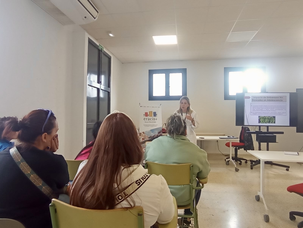 La actividad se llevó a cabo en formato charla informativa impartida por la trabajadora social y la matrona del centro de salud de Isla Cristina, quienes expusieron contenidos sobre embarazos no deseados en la adolescencia y la importancia de una educación sexual responsable. Se utilizó una presentación visual para explicar los derechos sexuales y reproductivos, el uso de métodos anticonceptivos y la planificación familiar. El lenguaje se adaptó al grupo participante, favoreciendo la cercanía y la comprensión.